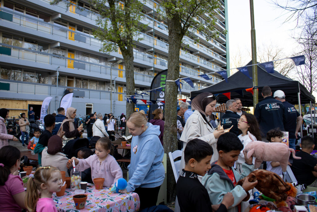 De dag werd feestelijk afgesloten met een bijeenkomst voor bewoners. Onder het genot van hapjes en drankjes was er ruimte voor ontmoeting en activiteiten. De kinderen waren creatief bezig en maakte de mooiste kunstwerken op bloempotjes. Daarnaast was er een kookdemonstratie. Hier maakten bewoners kennis met inductie koken, als voorbereiding op de nieuwe situatie in hun woning.